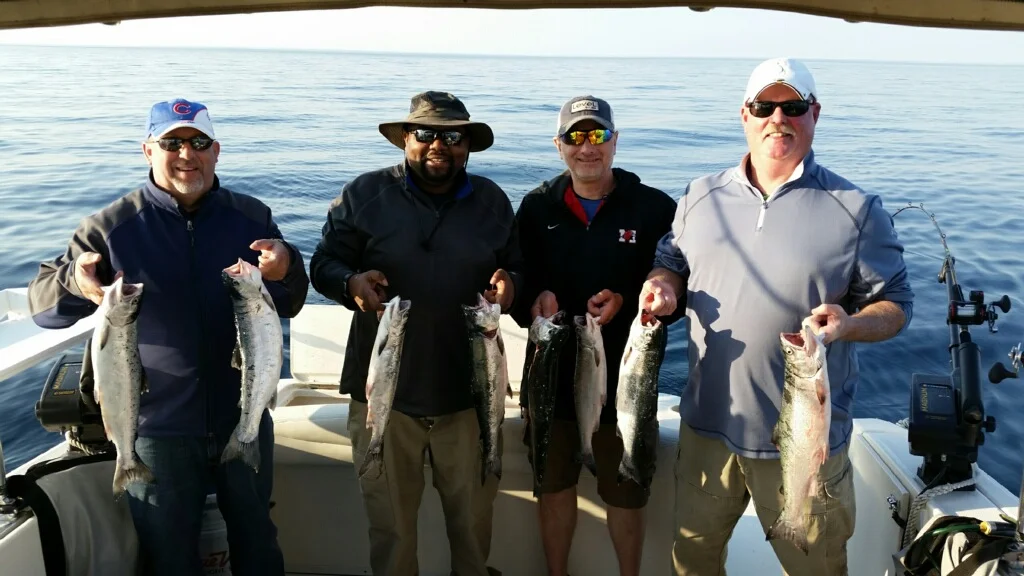 /We've been way too busy and forgot to post the reports. Fishing for Salmon has slowed down a bit from the end of May, but still remains good. The Lake Trout have picked back up and kept us plenty busy with Salmon mixed in! Here are a few pics from the past few trips.